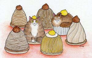二十四節気をテーマにした2週間ごとのものと、スイーツテーマの12ヶ月のもの、2種類のカレンダーと手のひらサイズの原画を出品します。